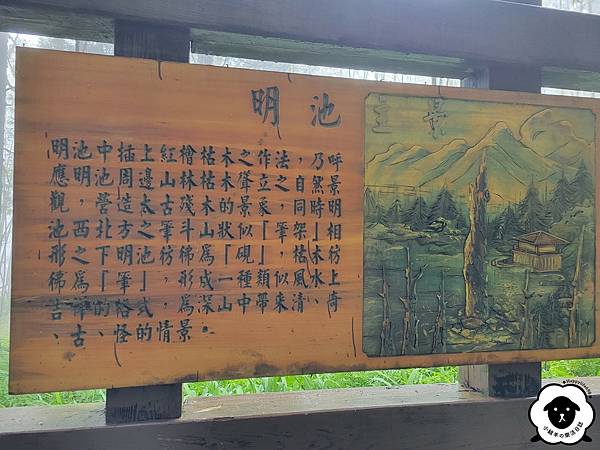 Check-in時會拿到明池森林遊樂區的門票,從山莊走來不到10分鐘的路程,蠻適合早餐後散散步、幫助消化。